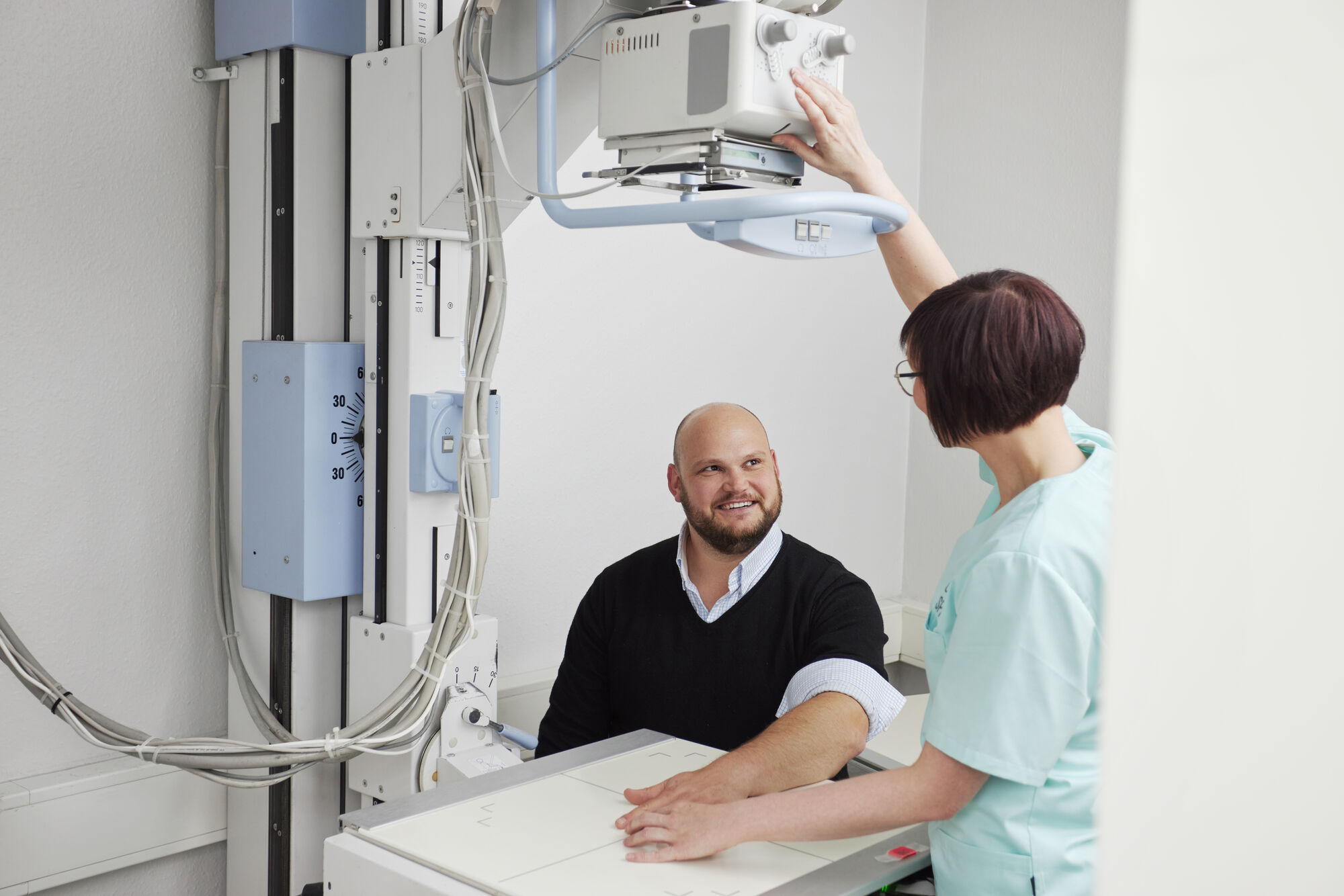 Das Digitale Röntgen ist ein modernes, effizientes Diagnoseverfahren in der Orthopädie. Im Vergleich zu herkömmlichen analogen Röntgenaufnahmen bietet es eine deutlich geringere Strahlenbelastung und liefert gleichzeitig Bilder des Skelettsystems in höherer Bildqualität. Dadurch können Knochenbrüche, Gelenkverschleiß (Arthrose) und andere knöcherne Veränderungen präzise diagnostiziert werden. Ein weiterer Vorteil des Digitalen Röntgens ist die sofortige Verfügbarkeit der hochauflösenden Bilder, was eine schnelle Auswertung in unserer orthopädischen Praxis und eine unmittelbare Therapieplanung ermöglicht. So profitieren unsere Patientinnen und Patienten von einer schnellen und sicheren Diagnostik.